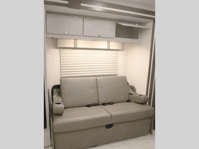 Sleeps 8 Slides 2 Length 32 ft 11 in Ext Width 8 ft 4 in Ext Height 10 ft 11 in Interior Color Riviera, Fawn Maple Exterior Color White Fiberglass w/Graphics. Optional Full-Body Paint; Cadet, Glacier Hitch Weight 7500 lbs GVWR 14500 lbs Fresh Water Capacity 50 gals Grey Water Capacity 32 gals Black Water Capacity 29 gals Generator NPS 4500 Fuel Type Gasoline Chassis Ford E-450 Fuel Capacity 55 gals Wheelbase 223 in Number Of Bunks 1 Available Beds Queen Refrigerator Type 12V Double Door Refrigerator Size 10.7 cu ft Cooktop Burners 3 Number of Awnings 1 Axle Weight Front 5000 lbs Axle Weight Rear 9600 lbs LP Tank Capacity 68 lbs. Water Heater Type On Demand Tankless AC BTU 15000 btu TV Info Coach 40" Smart TV Awning Info 21' Power with LED Light Strip Gross Combined Weight 22000 lbs Shower Type Standard Similar Floorplans