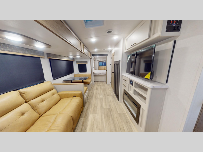 Sleeps 5 Slides 3 Length 37 ft 1 in Ext Height 11 ft 5 in Interior Color Bayport, Lexington Hitch Weight 1219 lbs Dry Weight 8878 lbs Cargo Capacity 2122 lbs Fresh Water Capacity 44 gals Grey Water Capacity 78 gals Black Water Capacity 39 gals Furnace BTU 30000 btu Available Beds King Refrigerator Type 12V Refrigerator Size 10 cu ft Cooktop Burners 3 Number of Awnings 2 LP Tank Capacity 30 lbs Water Heater Type On Demand Tankless TV Info LR HD LED TV Awning Info 13' Axle Count 2 Washer/Dryer Available Yes Number of LP Tanks 2 Shower Type Walk-In Shower Electrical Service 50 amp Similar Floorplans