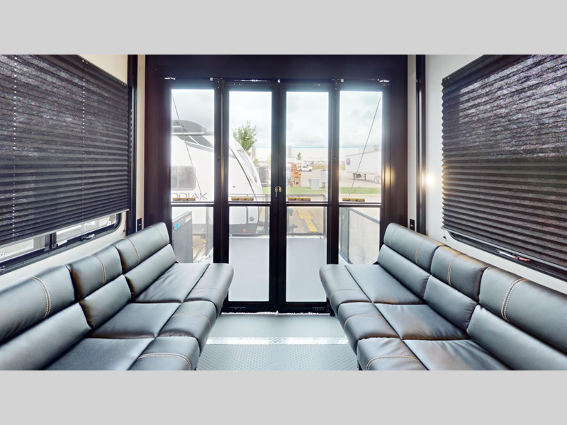 Whether it's for work or play, you'll be able to haul cargo and toys without much effort in the Voltage. The industry-leading 7'-tall ceiling height on the slide outs will give you plenty of room to walk about standing tall, and the solid garage floor has a Tuff Ply rubber floor covering to protect the integrity of your interior. In the main living space, you'll find a 50" LCD HDTV for more entertainment as well as heated and massaging residential sofas to relax on while you watch. The All Weather Package has additional insulation to keep you protected during more types of weather, and the dedicated heat ducts for the underbelly will also aid in cooler weather.