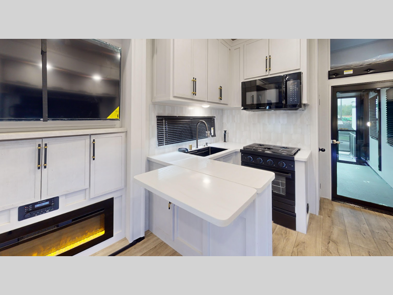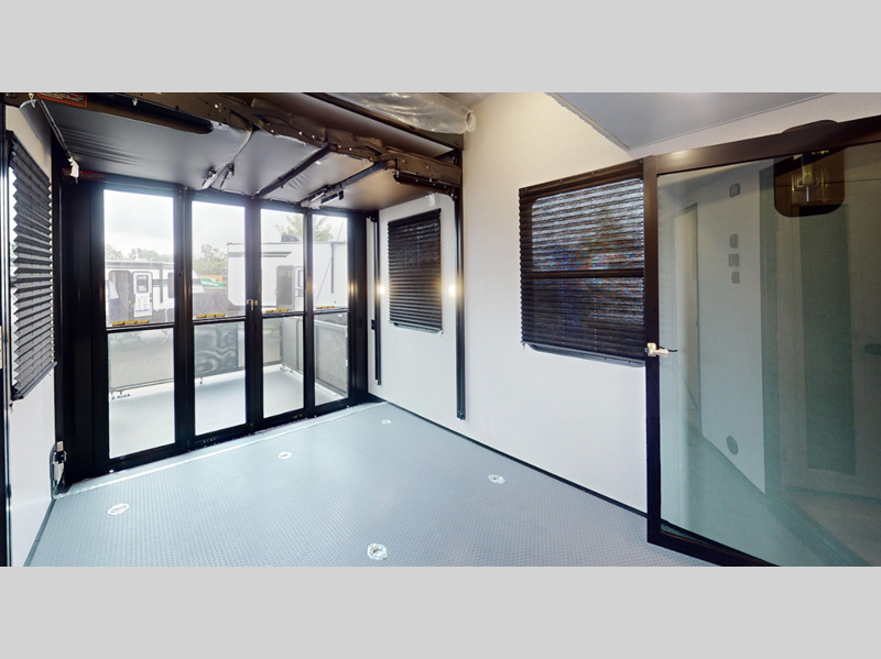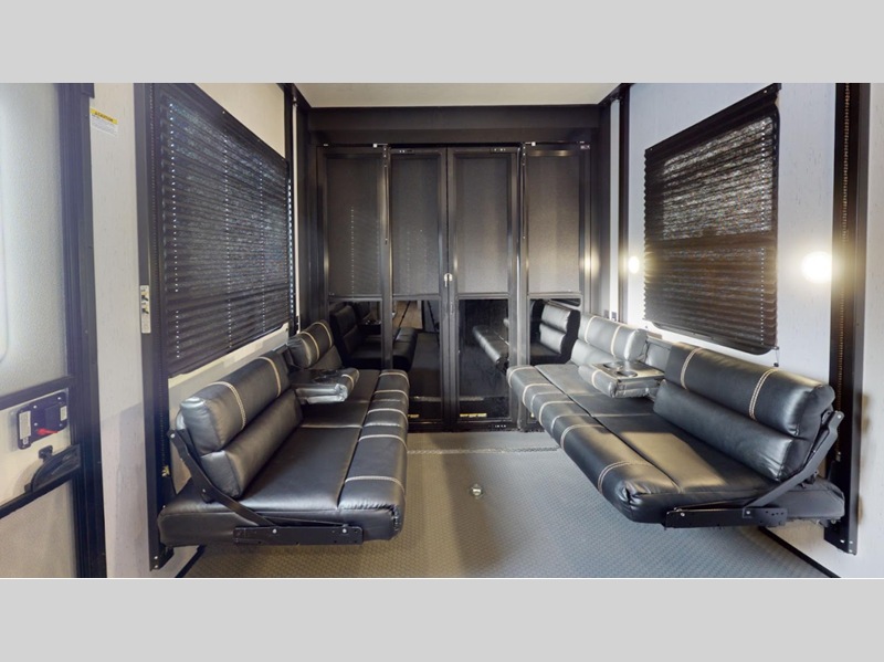 Your toys will stay secure in the garage with 2,500 lb. tie-downs, plus there is a Tuff Ply floor that is non-slip and easy to clean. These toy haulers include many at-home comforts you won't want to camp without, like the two upgraded A/C units, 50" TV in the living area, residential duvet covers, and the list goes on. There are many options to choose from as well that will further customize your fifth wheel, like the generator prep, the roof top solar prep, and the ramp door patio system!