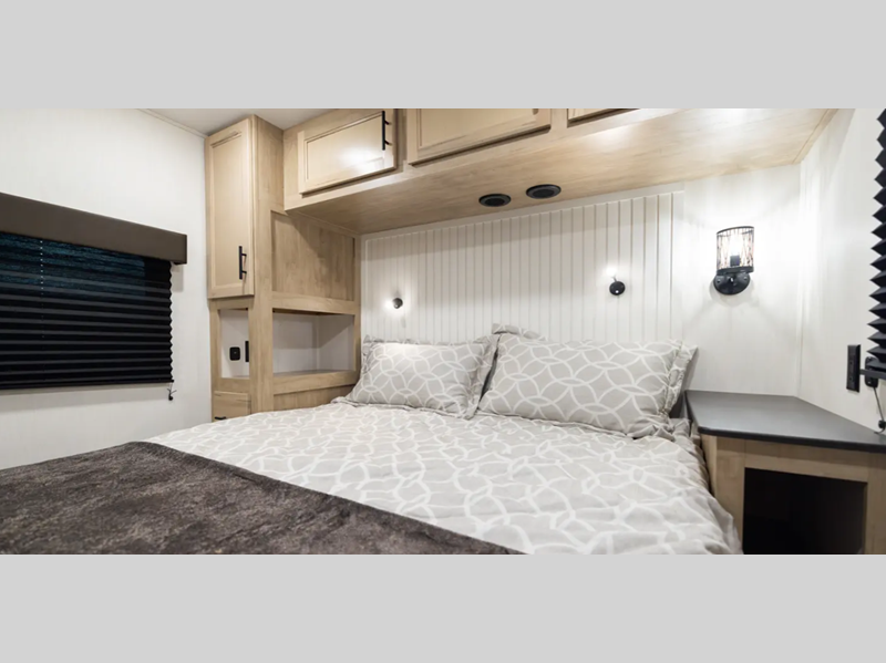 You will always find a comfortable place to relax with friends and family, cook with the full kitchen amenities, and clean up daily in the bathroom. There are also cozy sleeping spaces, plenty of storage options, and durable construction materials so you can enjoy your trailer for years to come!