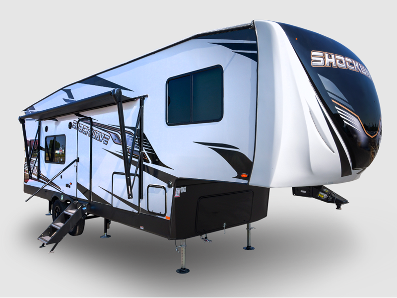 Experience a seismic change in extreme RVing with these Forest River Shockwave travel trailer and fifth wheel toy haulers!