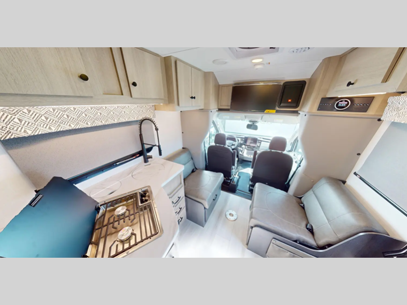 Sleeps 3 Length 25 ft 6 in Ext Width 7 ft 3 in Ext Height 10 ft 5 in GVWR 10360 lbs Fresh Water Capacity 35 gals Grey Water Capacity 30 gals Black Water Capacity 30 gals Generator 2.8 kW Onan Gas Fuel Type Gasoline Engine 3.5L EcoBoost V6 Chassis Ford Transit AWD Fuel Capacity 25 gals Wheelbase 178 in Available Beds Full Refrigerator Type LP/Electric 110V Refrigerator Size 5.3 cu ft Convection Cooking Yes Shower Size 24" x 32" Number of Awnings 1 Axle Weight Front 4130 lbs Axle Weight Rear 7275 lbs LP Tank Capacity 41 lbs Water Heater Type Truma Combi AC BTU 13500 btu TV Info LR 12V LED TV Awning Info Power with LED Lights Gross Combined Weight 13500 lbs Shower Type Standard Electrical Service 30 amp Similar Floorplans