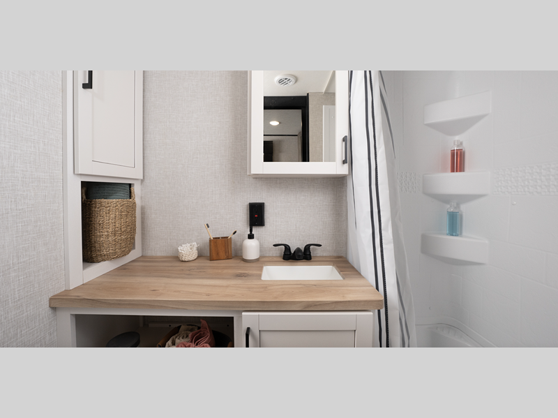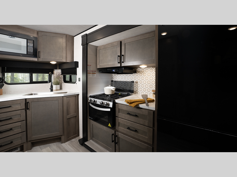 Each one is built with a Magnum Roof System and a PVC roofing membrane to keep your unit protected in all weather conditions. The vinyl flooring throughout will be easy to clean and is easy on the eyes. The seamless pressed membrane countertops will have you feeling right at home and the solid swing-down step at the main entrance helps you safely enter and exit.